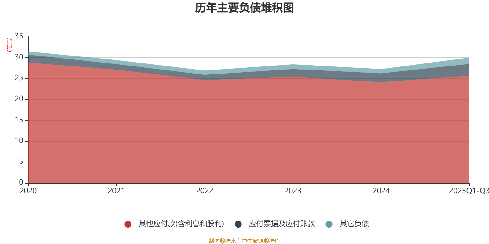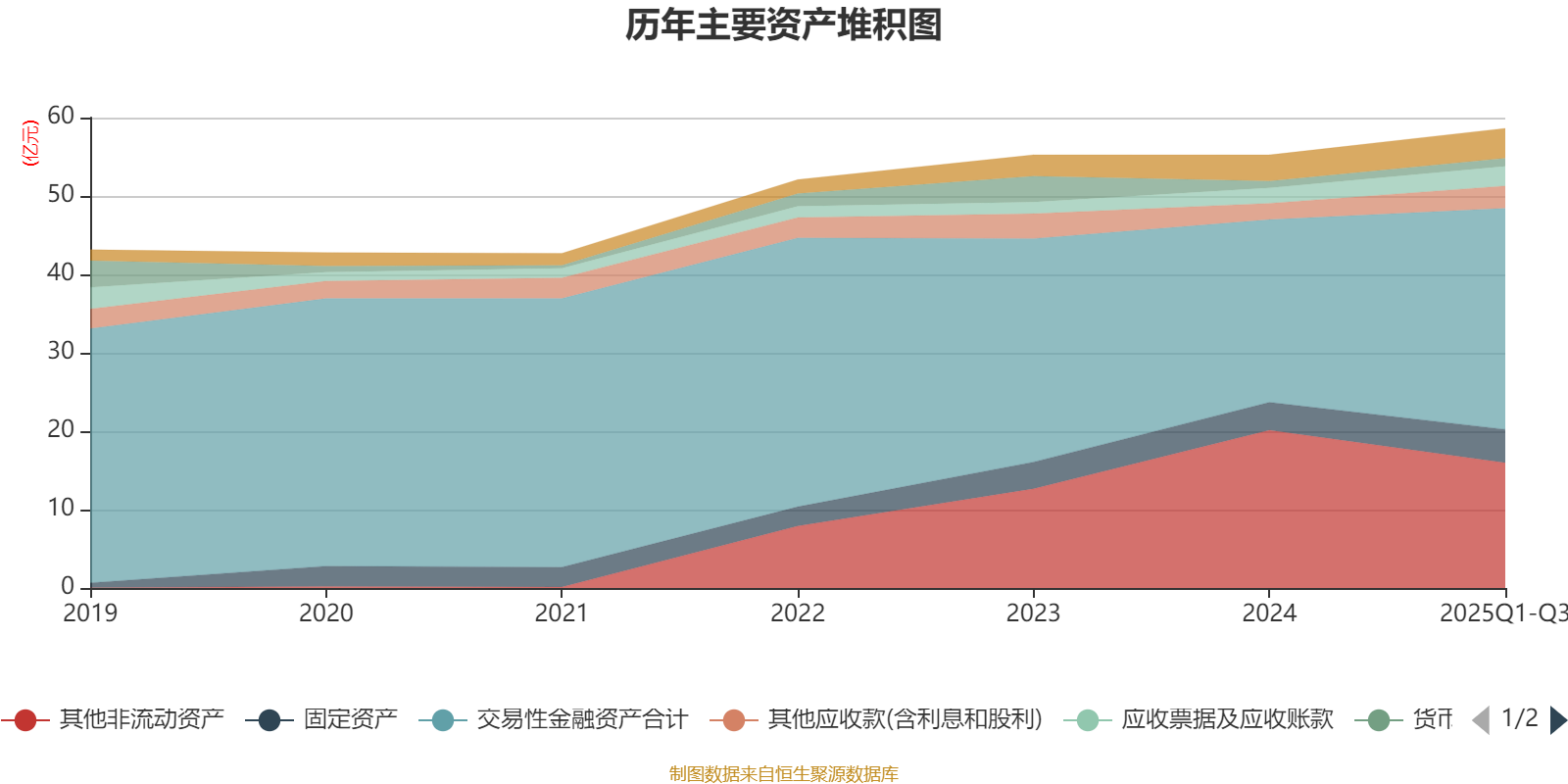 资产重大变化方面,截至2025年三季度末,公司其他非流动资产较上年末减少20.67%,占公司总资产比重下降9.2个百分点;交易性金融资产合计较上年末增加21.06%,占公司总资产比重上升5.93个百分点;其他应收款(含利息和股利)较上年末增加36.35%,占公司总资产比重上升1.08个百分点;存货较上年末增加57.53%,占公司总资产比重上升0.86个百分点。