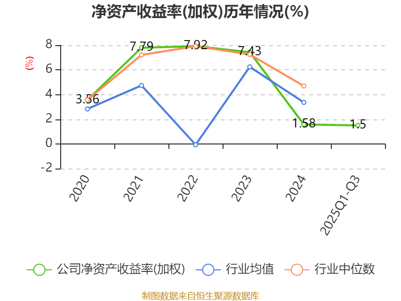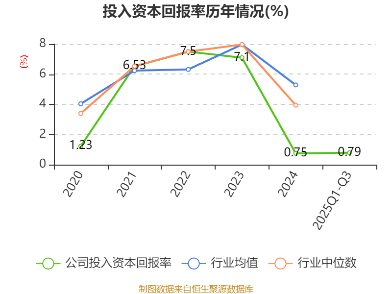 盈利能力方面, 2025年前三季度公司加权平均净资产收益率为1.5%,同比下降0.13个百分点。公司2025年前三季度投入资本回报率为0.79%,较上年同期下降0.12个百分点。