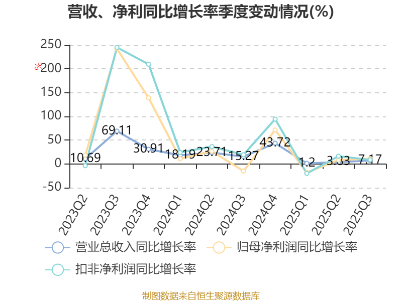 负债重大变化方面,截至2025年三季度末,公司短期借款较上年末减少55.35%,占公司总资产比重下降3.64个百分点;应付票据及应付账款较上年末增加41.07%,占公司总资产比重上升1.27个百分点;应付职工薪酬较上年末减少79.79%,占公司总资产比重下降0.52个百分点;合同负债较上年末增加188.38%,占公司总资产比重上升0.18个百分点。