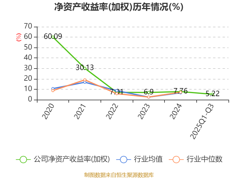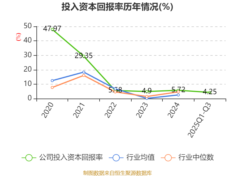 盈利能力方面, 2025年前三季度公司加权平均净资产收益率为5.22%,同比下降0.17个百分点。公司2025年前三季度投入资本回报率为4.25%,较上年同期上升0.34个百分点。