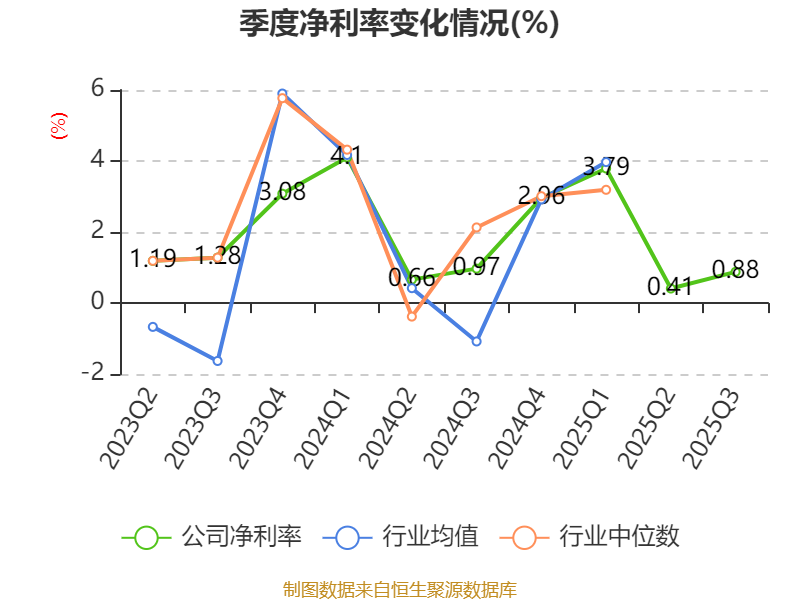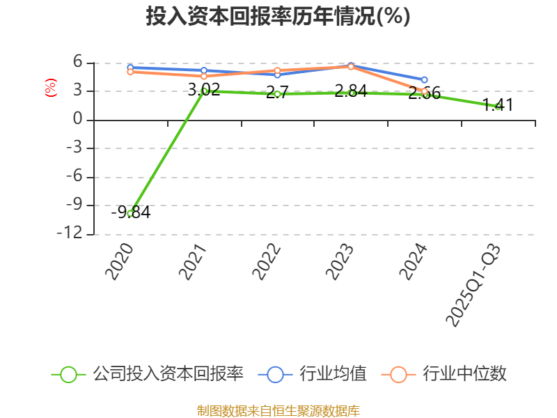 盈利能力方面, 2025年前三季度公司加权平均净资产收益率为0.82%,同比下降0.05个百分点。公司2025年前三季度投入资本回报率为1.41%,较上年同期下降0.26个百分点。