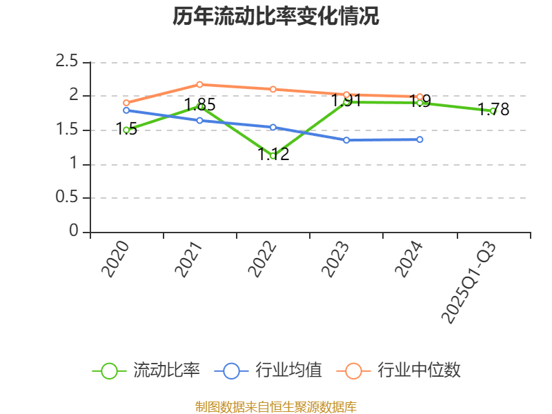 2025年前三季度,公司流动比率为1.78,速动比率为1.12。