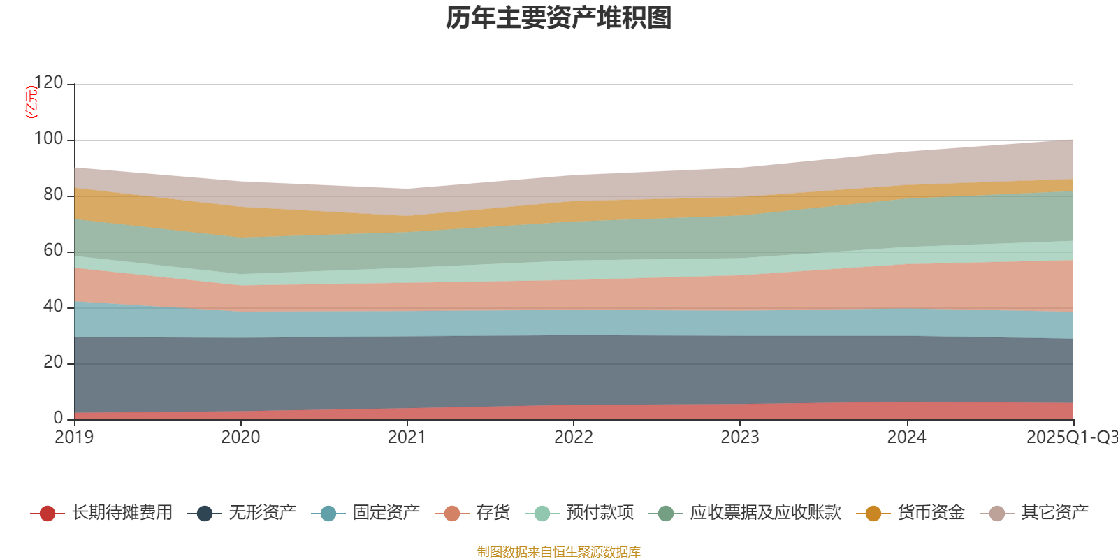 资产重大变化方面,截至2025年三季度末,公司存货较上年末增加16.56%,占公司总资产比重上升1.91个百分点;无形资产较上年末减少2.51%,占公司总资产比重下降1.66个百分点;其他应收款(含利息和股利)较上年末增加100.42%,占公司总资产比重上升1.04个百分点;货币资金较上年末减少11.32%,占公司总资产比重下降0.77个百分点。