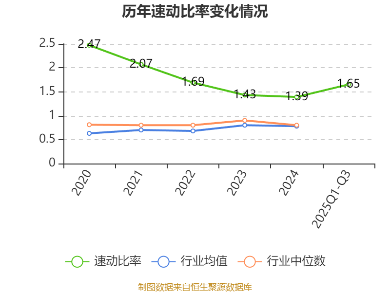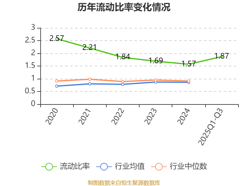2025年前三季度,公司流动比率为1.87,速动比率为1.65。