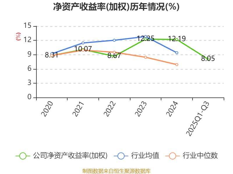 盈利能力方面, 2025年前三季度公司加权平均净资产收益率为8.05%,同比上升0.7个百分点。公司2025年前三季度投入资本回报率为7.91%,较上年同期上升1.21个百分点。