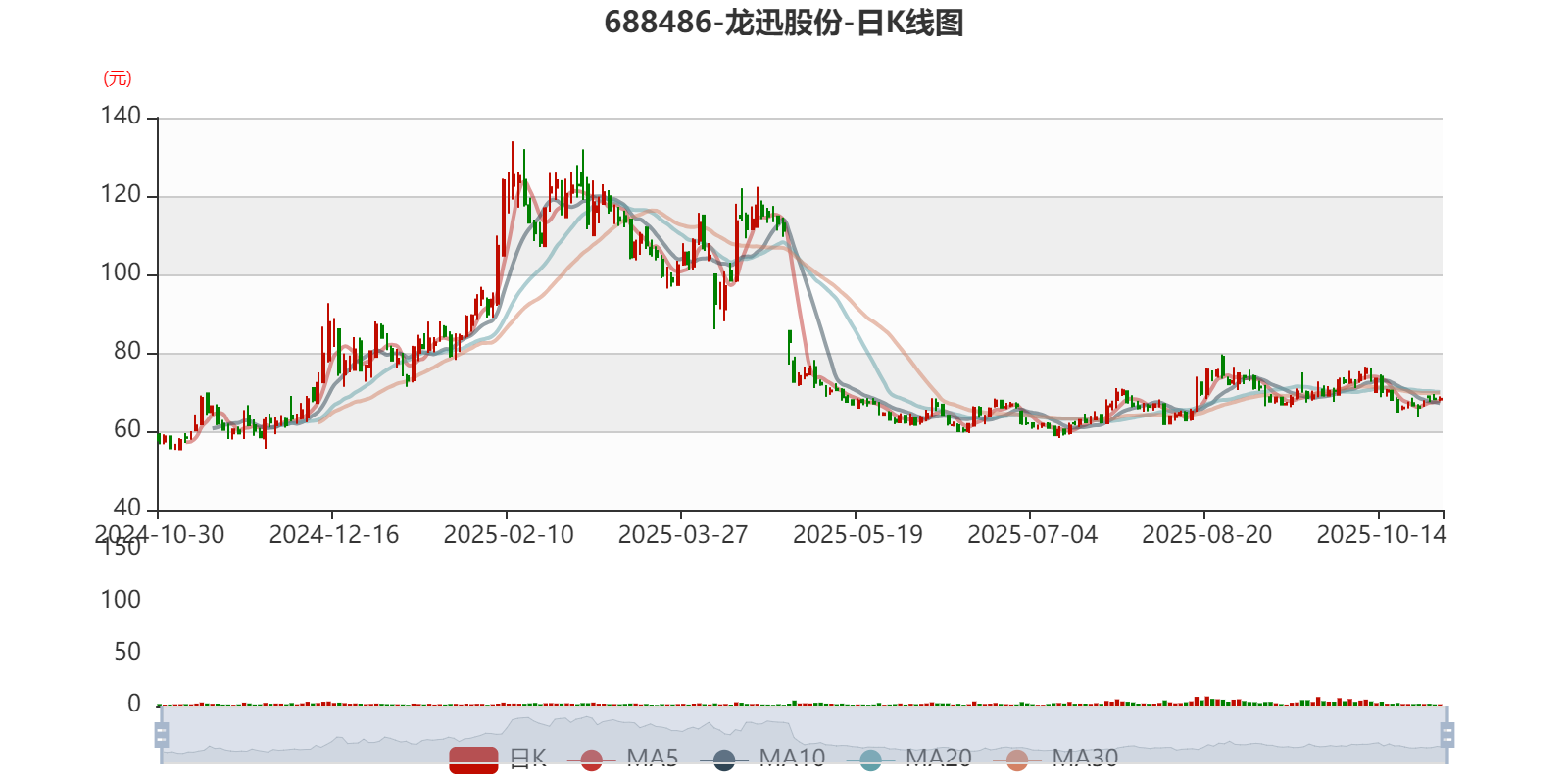 以10月29日收盘价计算,龙迅股份目前市盈率(TTM)约为52.04倍,市净率(LF)约6.03倍,市销率(TTM)约17.45倍。