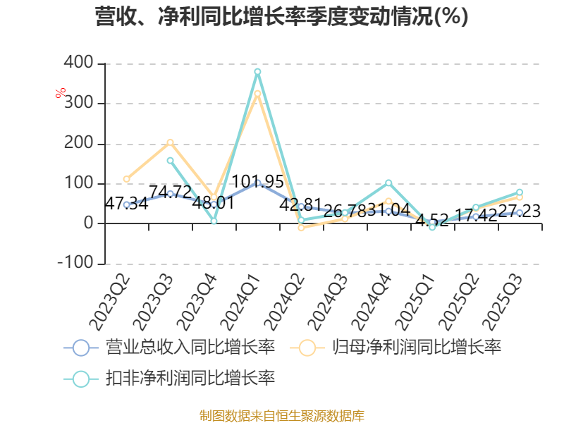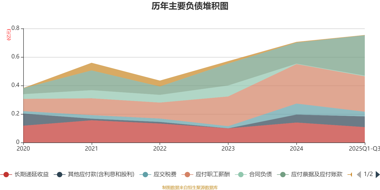 负债重大变化方面,截至2025年三季度末,公司应付票据及应付账款较上年末增加90.97%,占公司总资产比重上升0.8个百分点;应交税费较上年末减少56.7%,占公司总资产比重下降0.3个百分点;应付职工薪酬较上年末减少10.45%,占公司总资产比重下降0.28个百分点;长期递延收益较上年末减少23.1%,占公司总资产比重下降0.25个百分点。