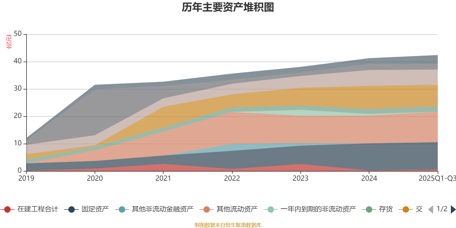 资产重大变化方面,截至2025年三季度末,公司应收款项融资较上年末增加420.99%,占公司总资产比重上升2.03个百分点;交易性金融资产合计较上年末减少7.24%,占公司总资产比重下降1.99个百分点;其他流动资产较上年末增加9.43%,占公司总资产比重上升1.6个百分点;一年内到期的非流动资产较上年末减少100%,占公司总资产比重下降1.47个百分点。