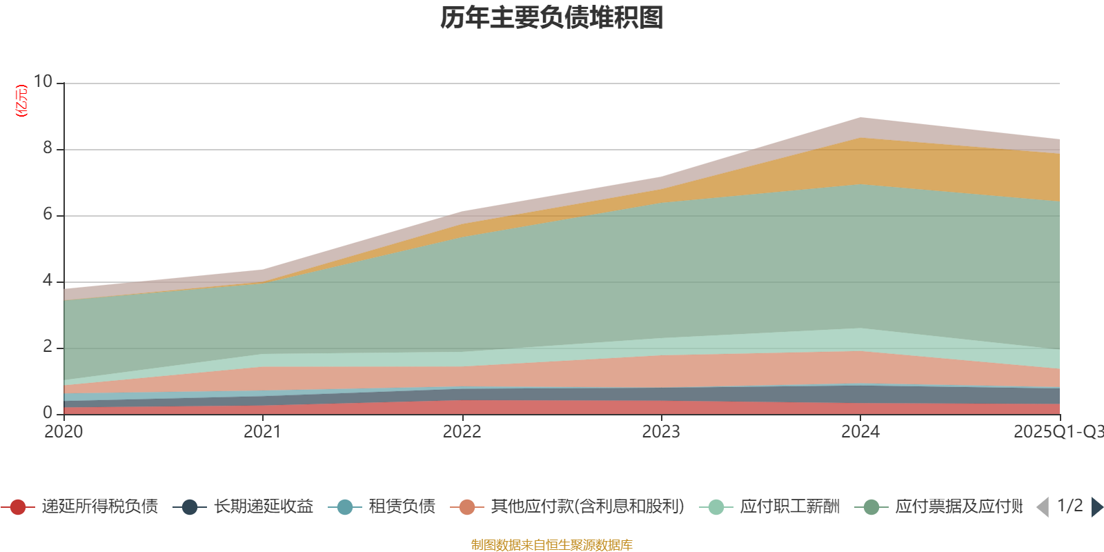 负债重大变化方面,截至2025年三季度末,公司其他应付款(含利息和股利)较上年末减少43.39%,占公司总资产比重下降1.06个百分点;交易性金融负债合计较上年末减少100%,占公司总资产比重下降0.52个百分点;应付职工薪酬较上年末减少15.72%,占公司总资产比重下降0.3个百分点;长期递延收益较上年末减少11.41%,占公司总资产比重下降0.18个百分点。