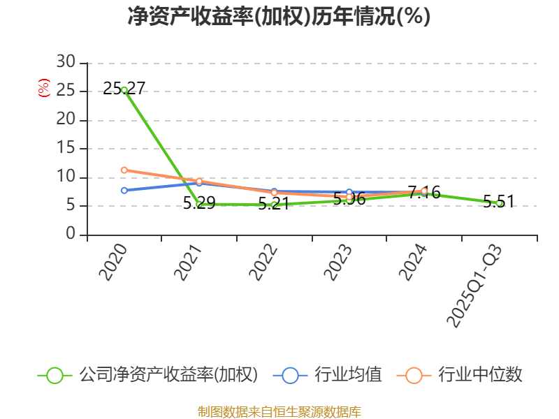 盈利能力方面, 2025年前三季度公司加权平均净资产收益率为5.51%,同比上升0.42个百分点。公司2025年前三季度投入资本回报率为4.6%,较上年同期上升0.24个百分点。