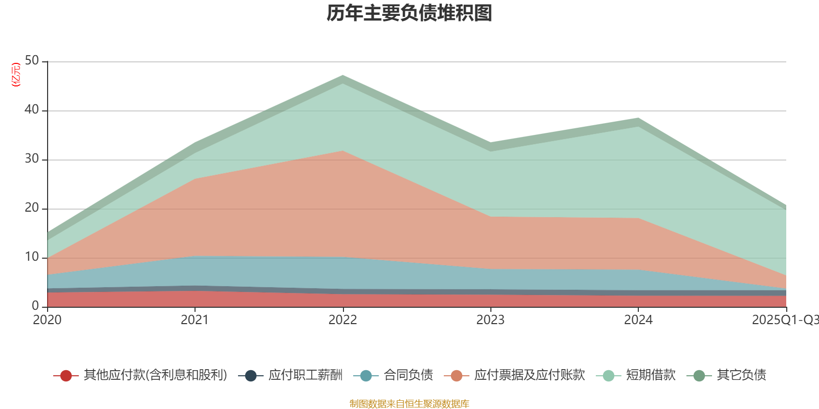 负债重大变化方面,截至2025年三季度末,公司应付票据及应付账款较上年末减少74.61%,占公司总资产比重下降9.51个百分点;合同负债较上年末减少91.96%,占公司总资产比重下降5.23个百分点;其他应付款(含利息和股利)较上年末减少1.83%,占公司总资产比重上升1.19个百分点;应付职工薪酬较上年末增加3.21%,占公司总资产比重上升0.71个百分点。