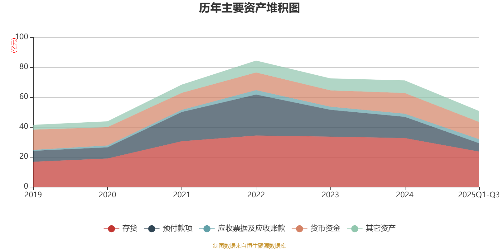 资产重大变化方面,截至2025年三季度末,公司预付款项较上年末减少60.74%,占公司总资产比重下降8.94个百分点;货币资金较上年末减少16.8%,占公司总资产比重上升3.27个百分点;递延所得税资产较上年末增加41.35%,占公司总资产比重上升2.36个百分点;应收票据及应收账款较上年末增加27.18%,占公司总资产比重上升2.34个百分点。