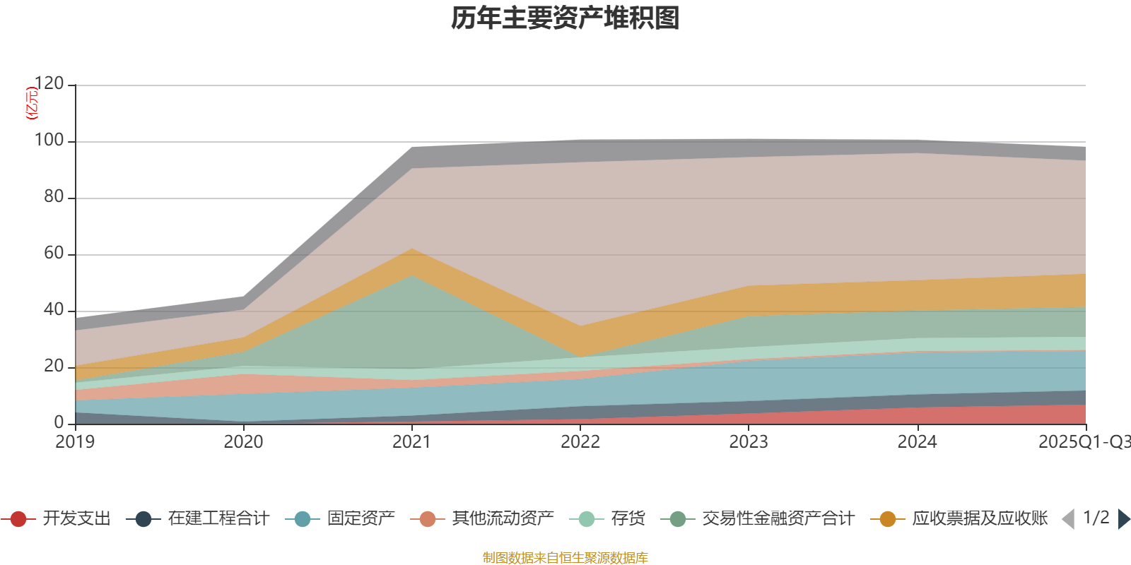 资产重大变化方面,截至2025年三季度末,公司货币资金较上年末减少10.81%,占公司总资产比重下降3.83个百分点;应收票据及应收账款较上年末增加8.66%,占公司总资产比重上升1.22个百分点;开发支出较上年末增加17.29%,占公司总资产比重上升1.16个百分点;交易性金融资产合计较上年末增加8.92%,占公司总资产比重上升1.13个百分点。
