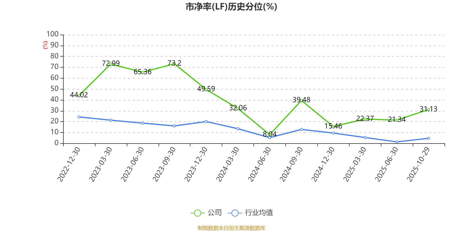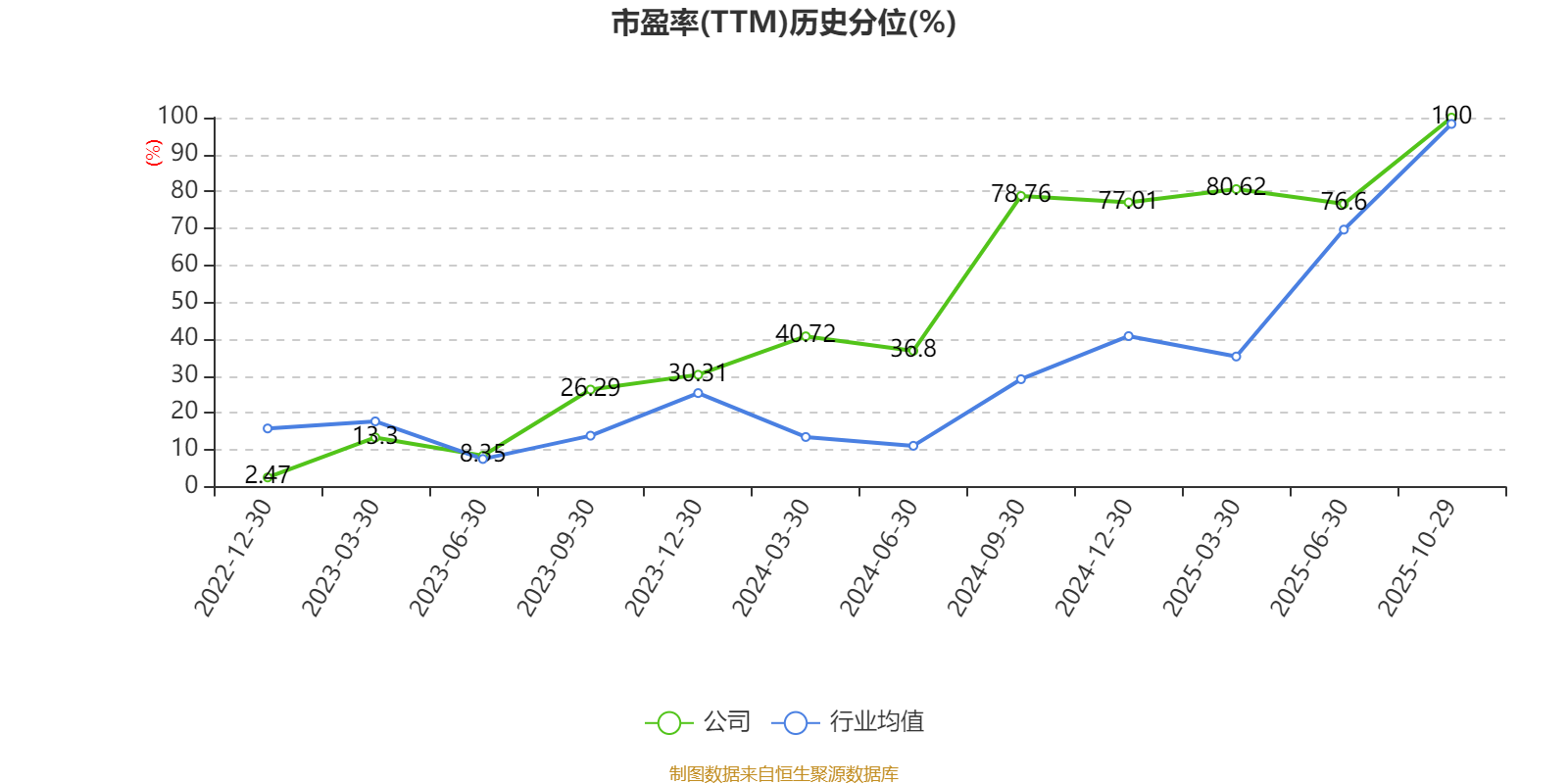 市盈率、市净率为负时,不显示当期分位数,会导致折线图中断。