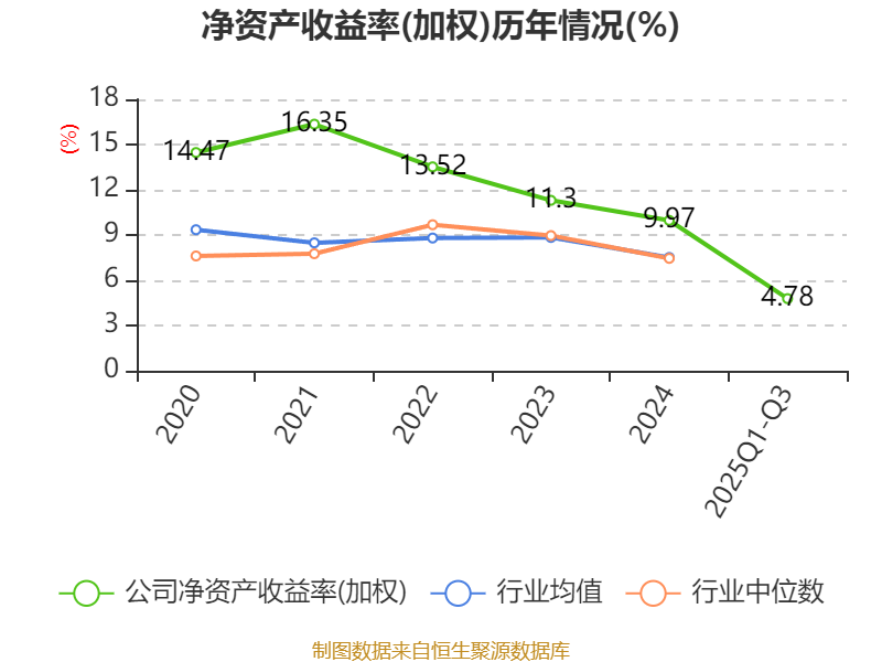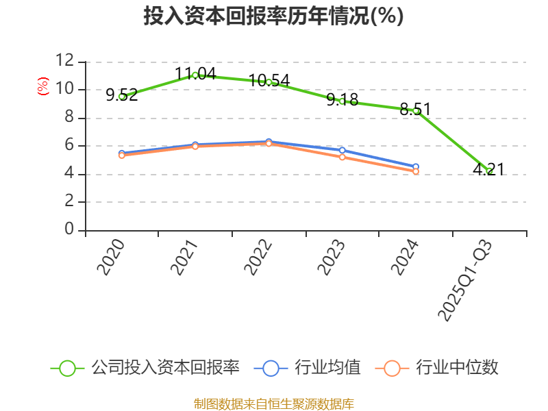盈利能力方面, 2025年前三季度公司加权平均净资产收益率为4.78%,同比下降1.57个百分点。公司2025年前三季度投入资本回报率为4.21%,较上年同期下降1.32个百分点。