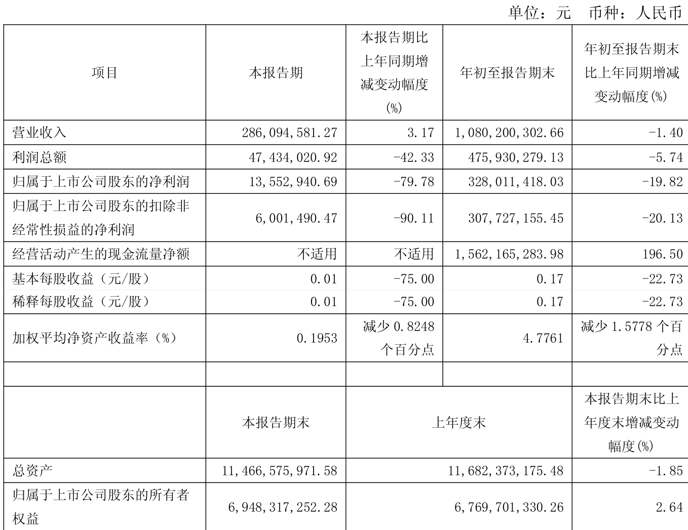 中证智能财讯中闽能源(600163)10月30日披露2025年第三季度报告。前三季度公司实现营业总收入10.8亿元,同比下降1.40%;归母净利润3.28亿元,同比下降19.82%;扣非净利润3.08亿元,同比下降20.13%;经营活动产生的现金流量净额为15.62亿元,同比增长196.50%;报告期内,中闽能源基本每股收益为0.17元,加权平均净资产收益率为4.78%。