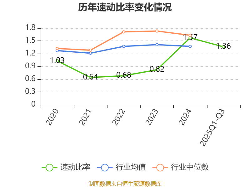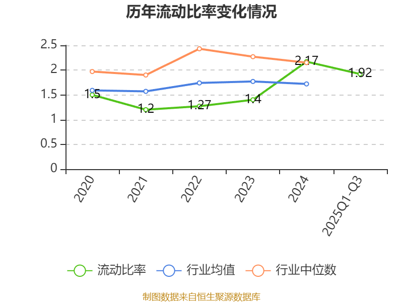 2025年前三季度,公司流动比率为1.92,速动比率为1.36。