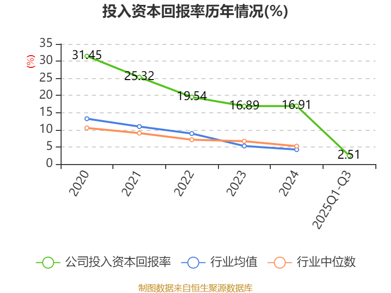 盈利能力方面, 2025年前三季度公司加权平均净资产收益率为2.68%,同比下降7.86个百分点。公司2025年前三季度投入资本回报率为2.51%,较上年同期下降5.9个百分点。