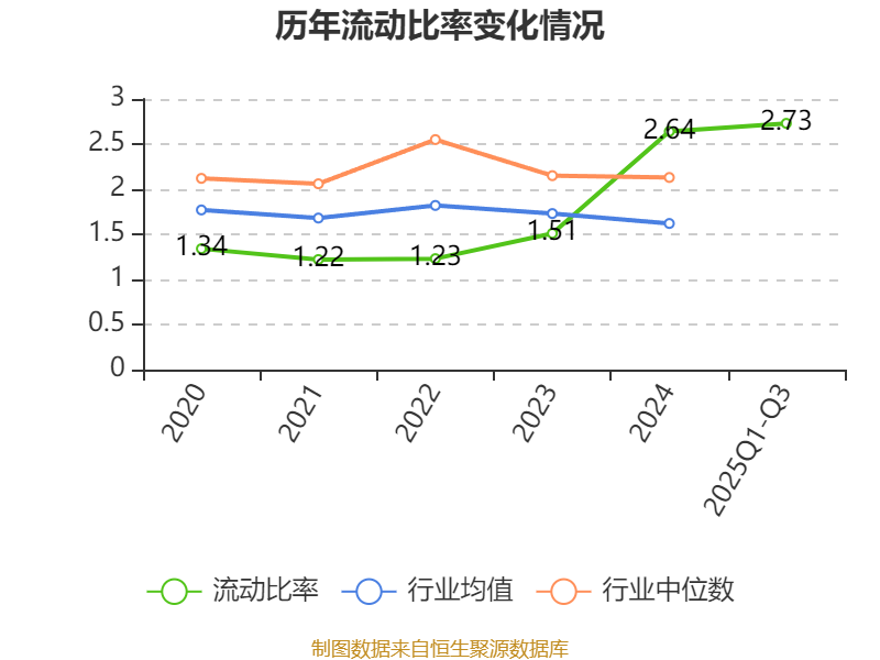 2025年前三季度,公司流动比率为2.73,速动比率为1.93。