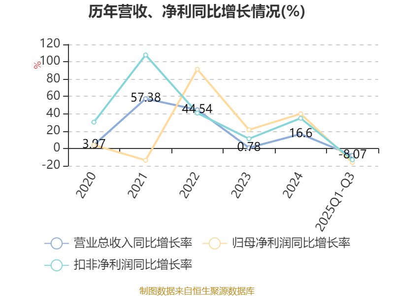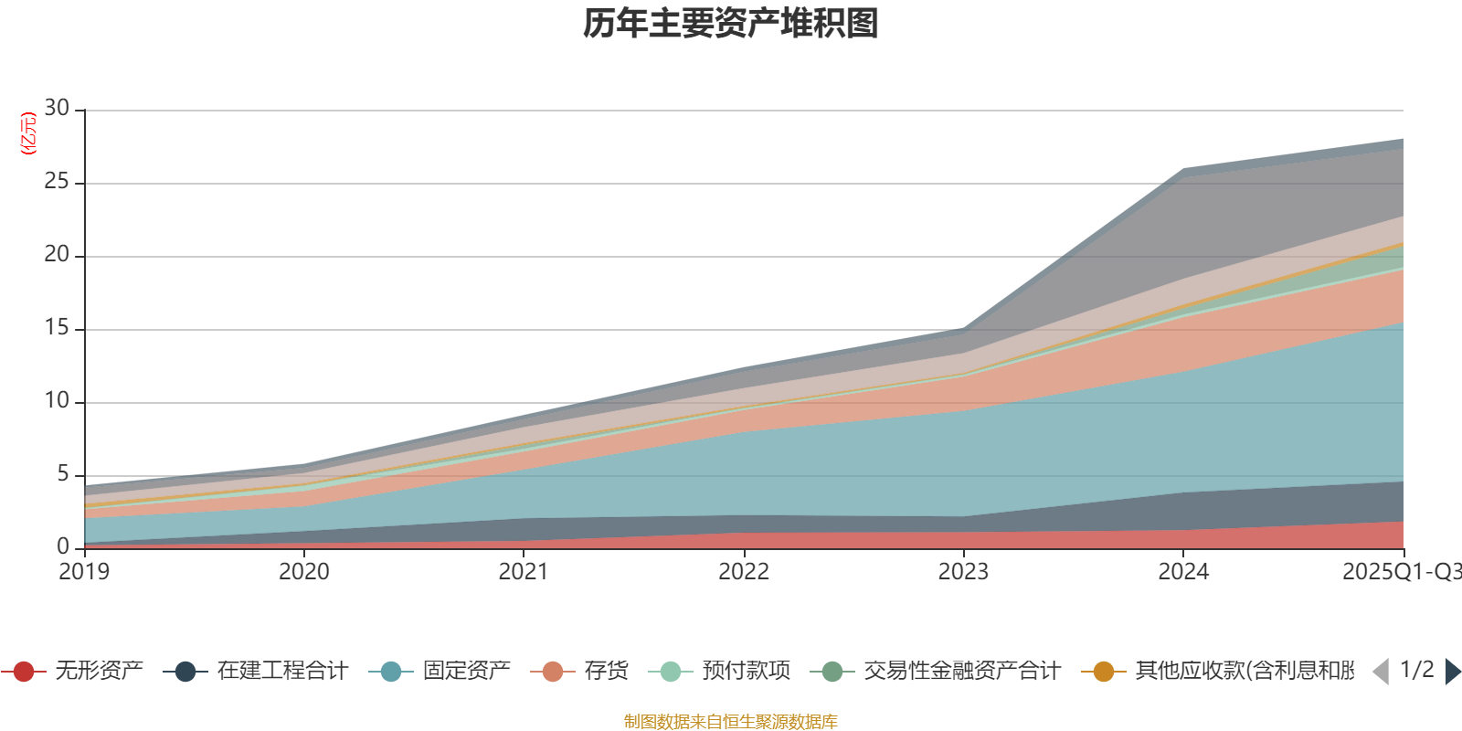 资产重大变化方面,截至2025年三季度末,公司货币资金较上年末减少33.61%,占公司总资产比重下降10.21个百分点;固定资产较上年末增加31.63%,占公司总资产比重上升7.04个百分点;交易性金融资产合计较上年末增加238.92%,占公司总资产比重上升3.47个百分点;无形资产较上年末增加48.63%,占公司总资产比重上升1.8个百分点。