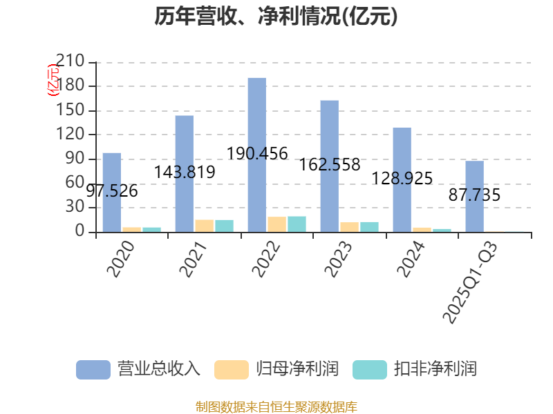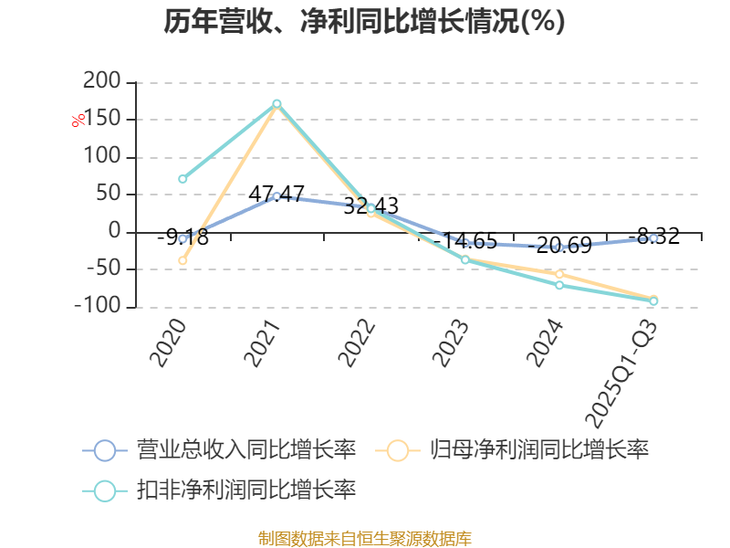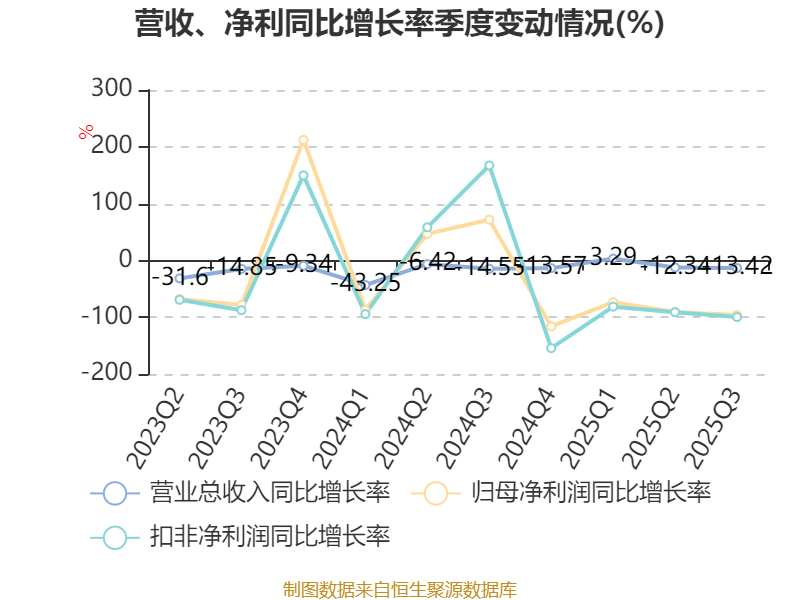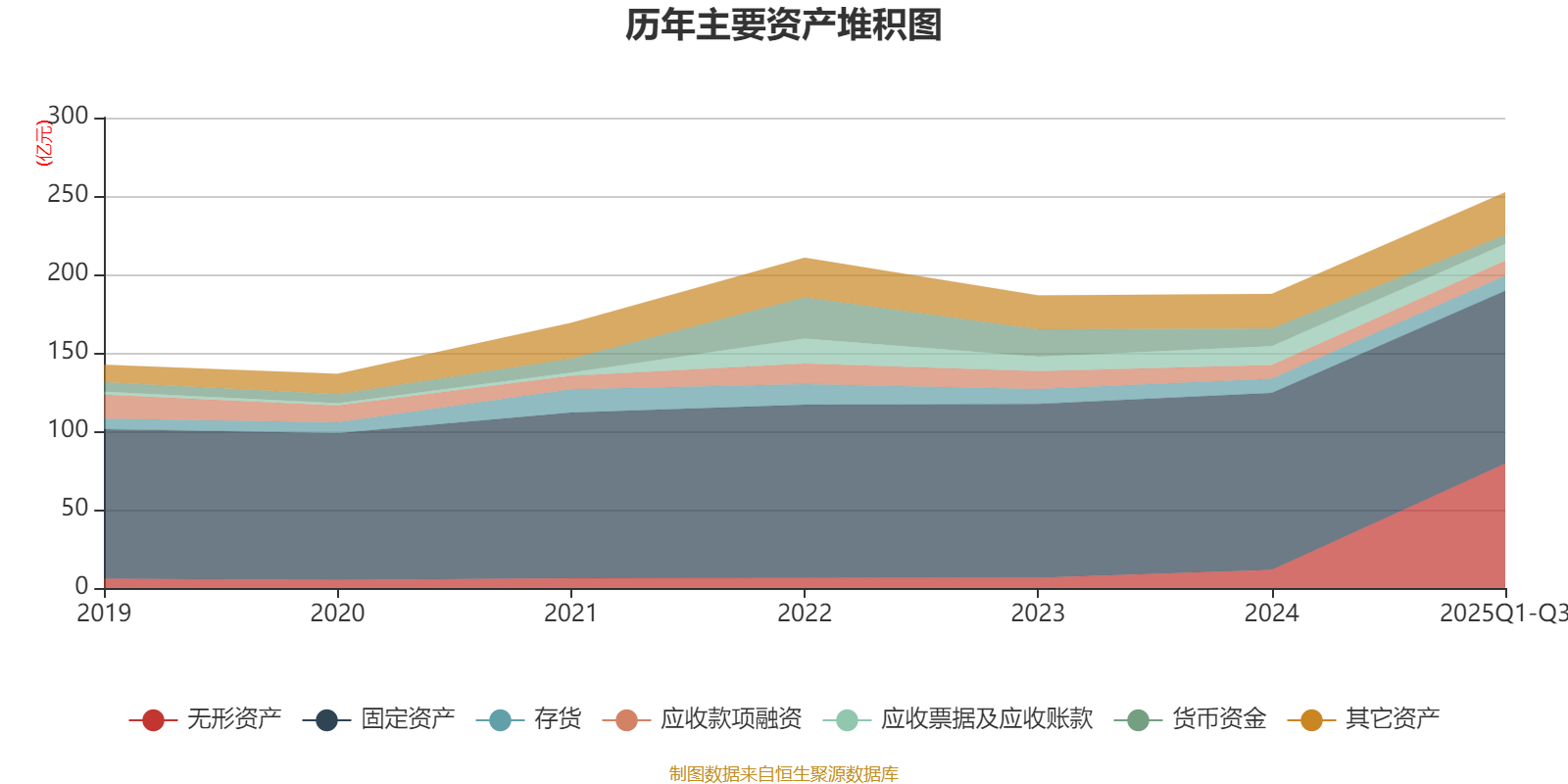 资产重大变化方面,截至2025年三季度末,公司无形资产较上年末增加583.3%,占公司总资产比重上升25.24个百分点;固定资产较上年末减少2.23%,占公司总资产比重下降16.47个百分点;货币资金较上年末减少49.22%,占公司总资产比重下降3.74个百分点;应收票据及应收账款较上年末减少11.09%,占公司总资产比重下降2.17个百分点。
