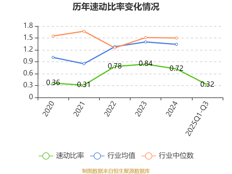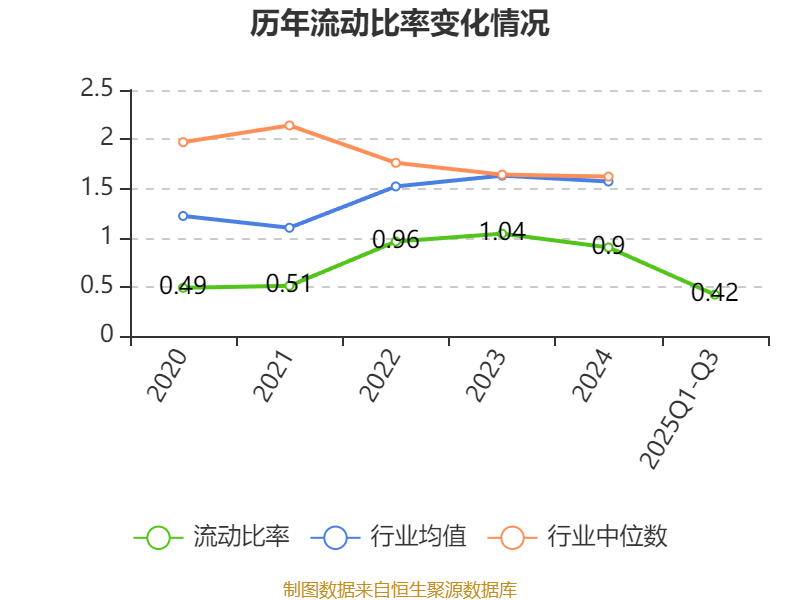 2025年前三季度,公司流动比率为0.42,速动比率为0.32。
