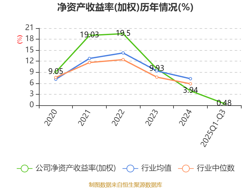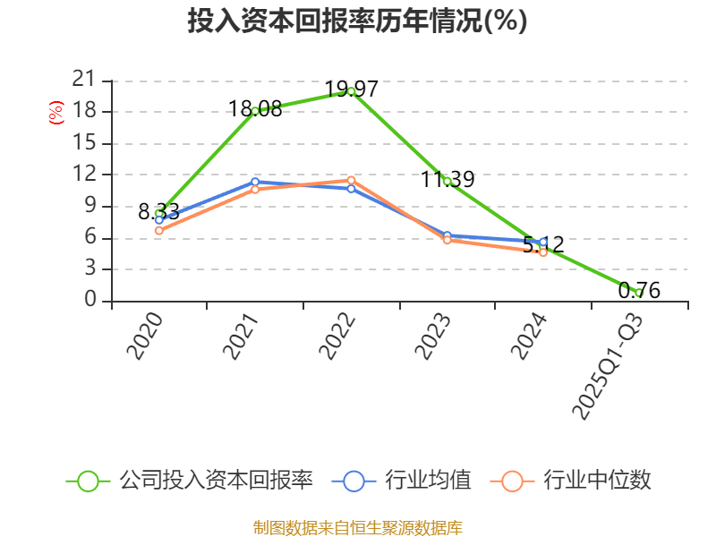 盈利能力方面, 2025年前三季度公司加权平均净资产收益率为0.48%,同比下降4.28个百分点。公司2025年前三季度投入资本回报率为0.76%,较上年同期下降4.45个百分点。