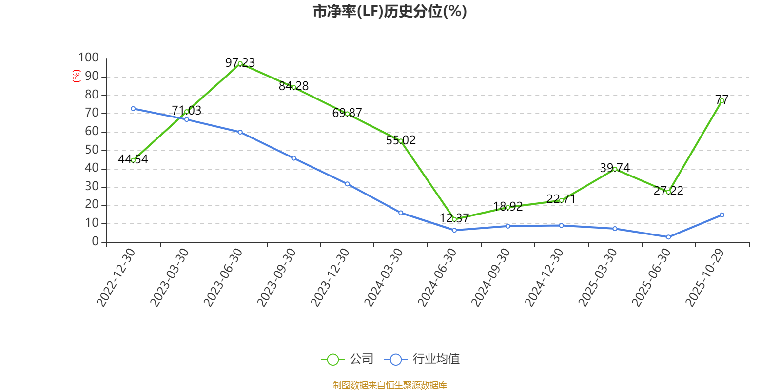市盈率、市净率为负时,不显示当期分位数,会导致折线图中断。