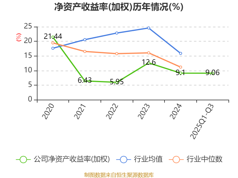 盈利能力方面, 2025年前三季度公司加权平均净资产收益率为9.06%,同比上升2.93个百分点。公司2025年前三季度投入资本回报率为5.49%,较上年同期上升1.03个百分点。