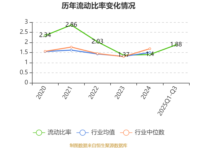 2025年前三季度,公司流动比率为1.88,速动比率为1.09。