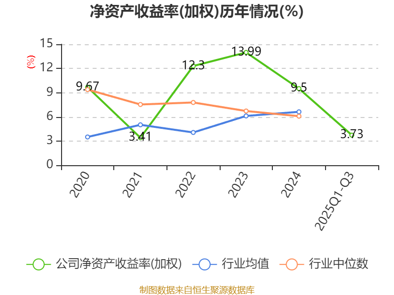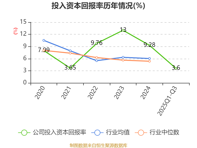 盈利能力方面, 2025年前三季度公司加权平均净资产收益率为3.73%,同比下降3.54个百分点。公司2025年前三季度投入资本回报率为3.6%,较上年同期下降3.49个百分点。