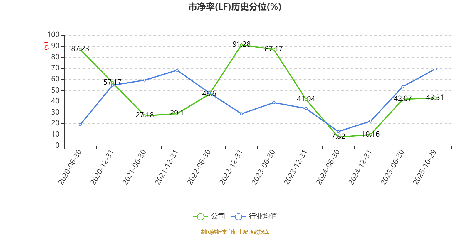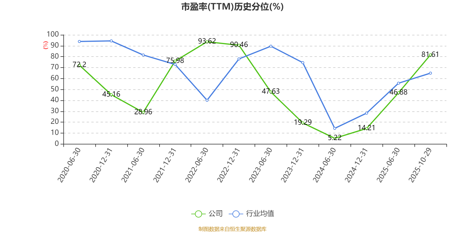 市盈率、市净率为负时,不显示当期分位数,会导致折线图中断。