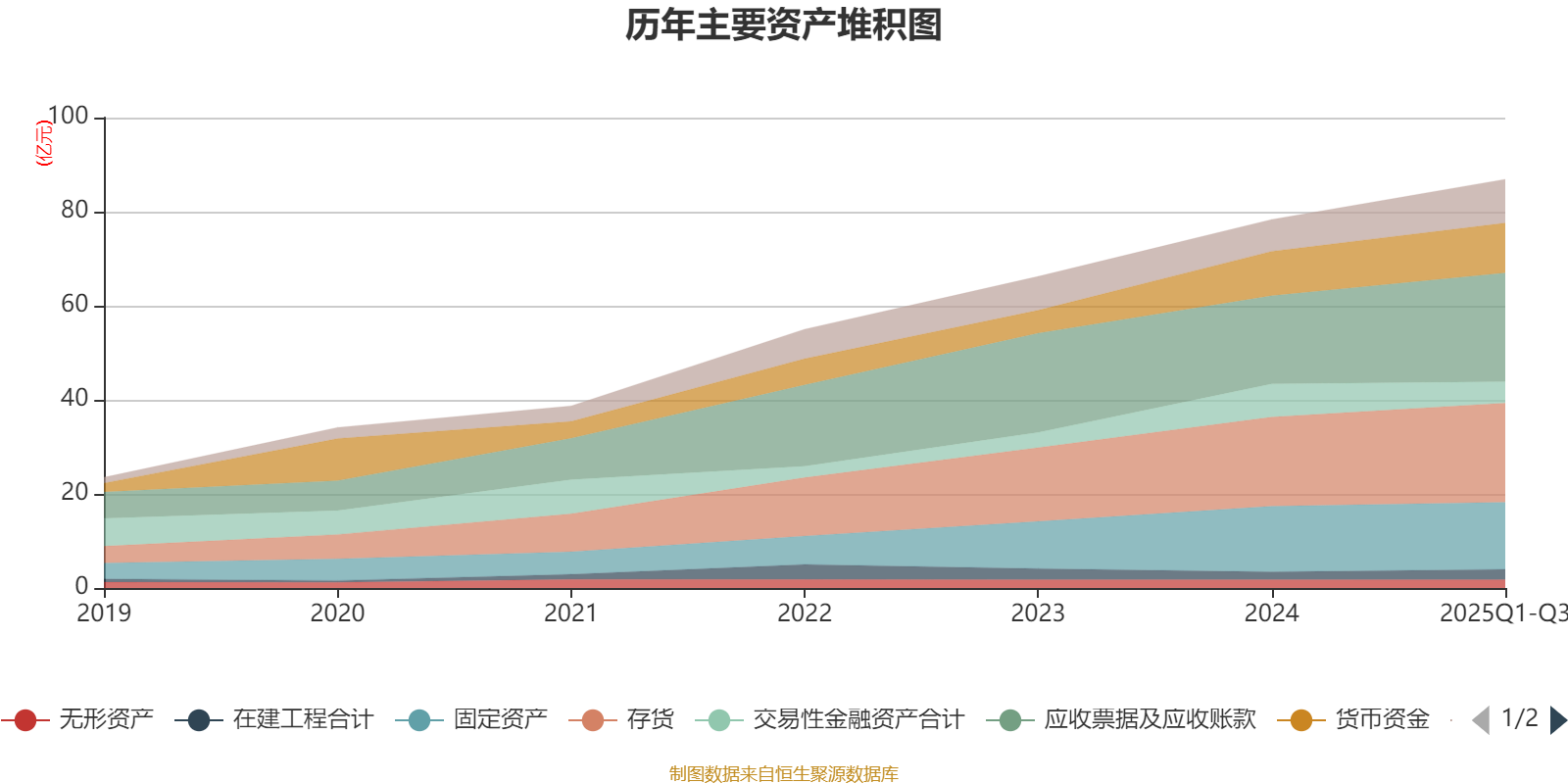 资产重大变化方面,截至2025年三季度末,公司交易性金融资产合计较上年末减少35.89%,占公司总资产比重下降3.78个百分点;应收票据及应收账款较上年末增加23.38%,占公司总资产比重上升2.69个百分点;固定资产较上年末增加2.36%,占公司总资产比重下降1.37个百分点;应收款项融资较上年末增加131.2%,占公司总资产比重上升1.08个百分点。