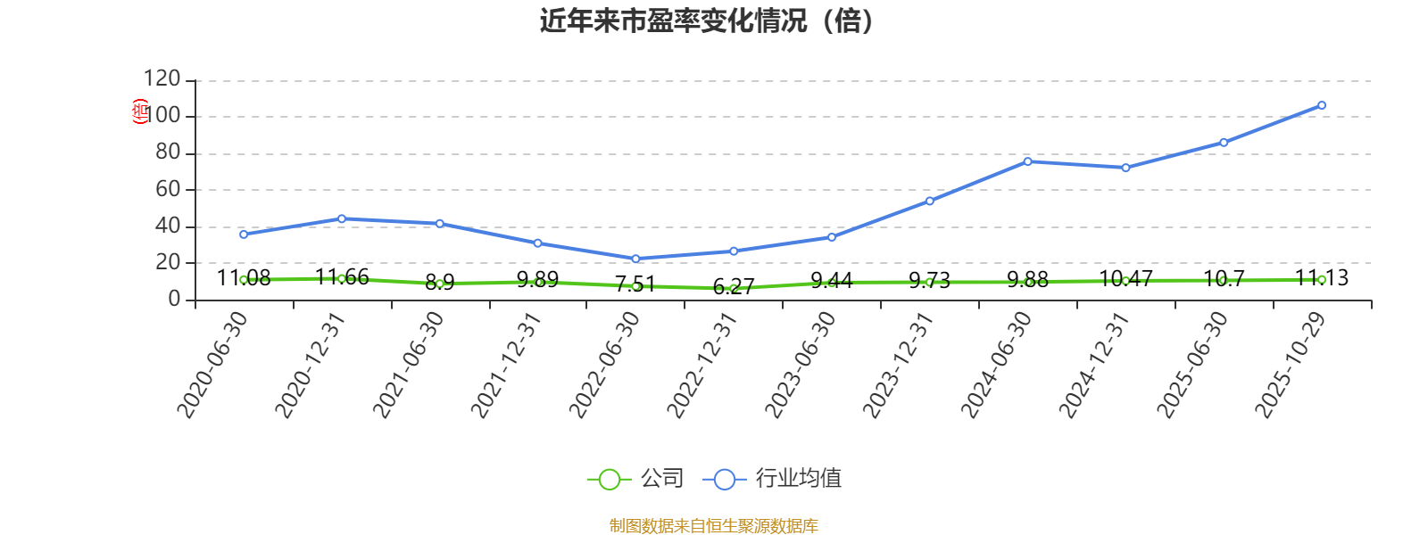 以10月29日收盘价计算,嘉化能源目前市盈率(TTM)约为11.13倍,市净率(LF)约1.15倍,市销率(TTM)约1.18倍。