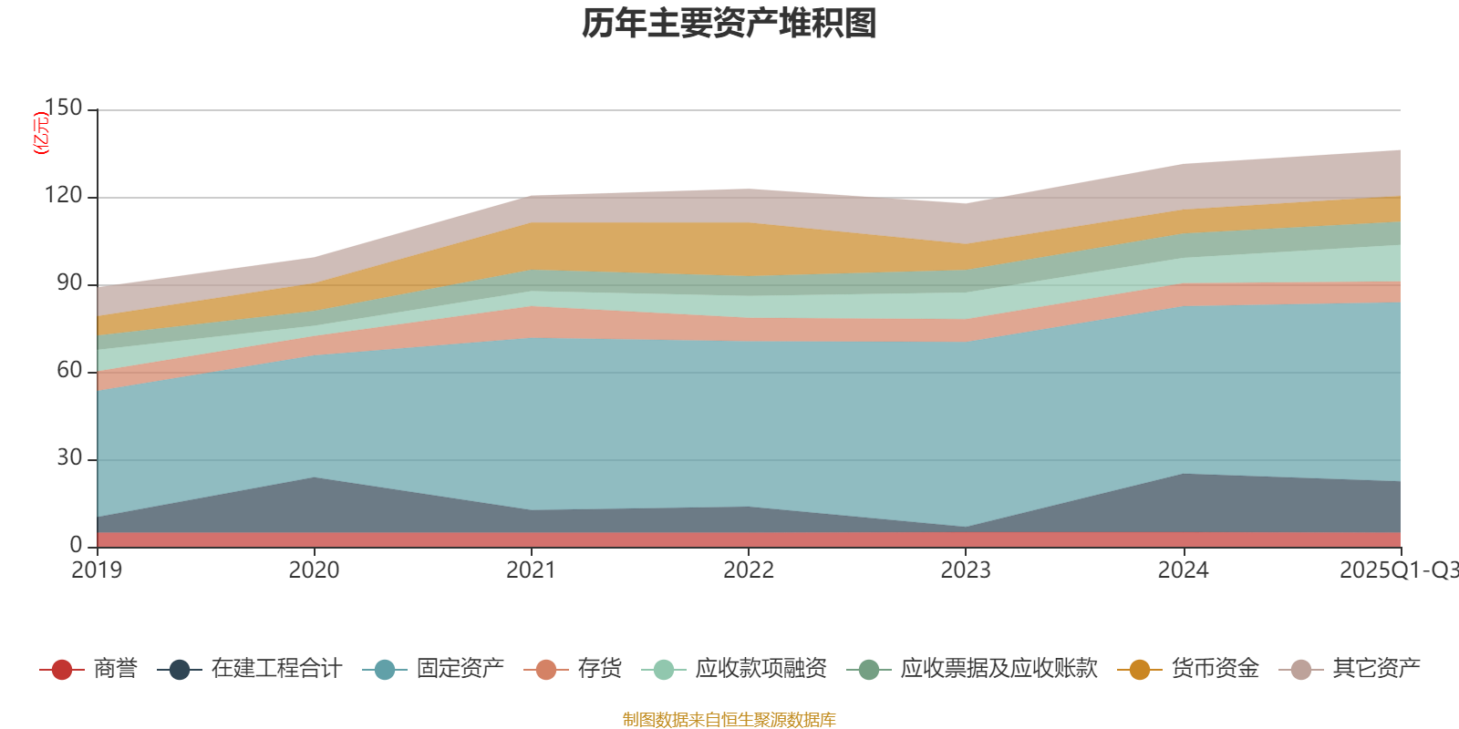 资产重大变化方面,截至2025年三季度末,公司应收款项融资较上年末增加44.35%,占公司总资产比重上升2.6个百分点;在建工程合计较上年末减少12.37%,占公司总资产比重下降2.36个百分点;固定资产较上年末增加7.02%,占公司总资产比重上升1.42个百分点;存货较上年末减少9.97%,占公司总资产比重下降0.8个百分点。