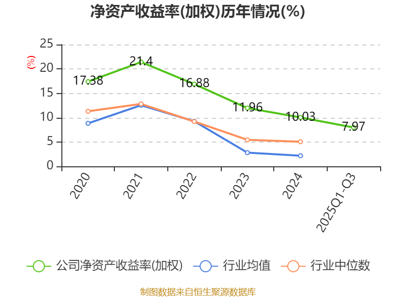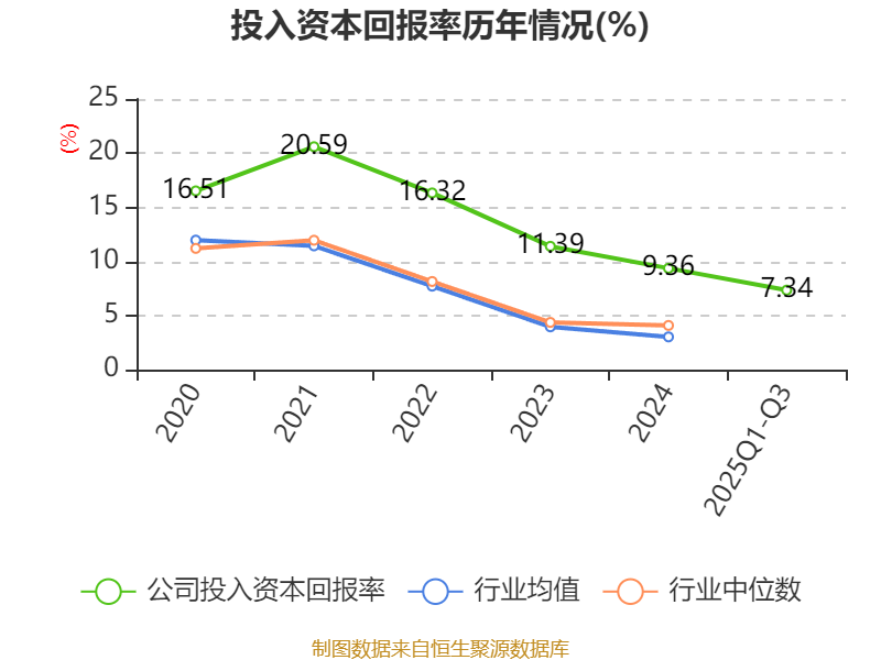 盈利能力方面, 2025年前三季度公司加权平均净资产收益率为7.97%,同比上升0.11个百分点。公司2025年前三季度投入资本回报率为7.34%,较上年同期下降0.22个百分点。