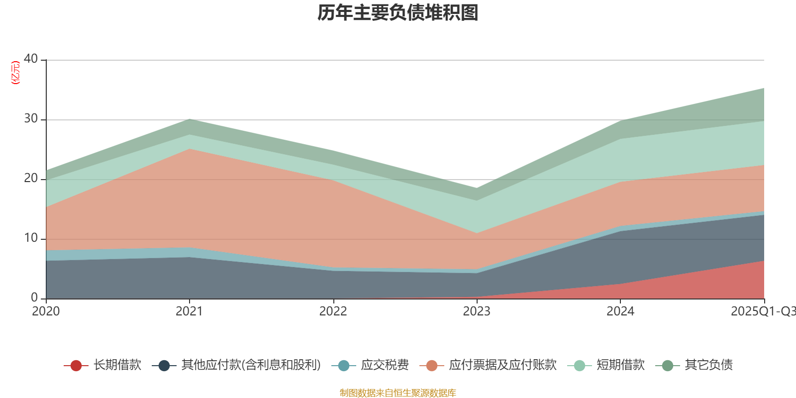 负债重大变化方面,截至2025年三季度末,公司长期借款较上年末增加159.84%,占公司总资产比重上升2.79个百分点;其他应付款(含利息和股利)较上年末减少13.19%,占公司总资产比重下降1.1个百分点;长期应付款合计占公司总资产的0.86%,上年末为0;一年内到期的非流动负债较上年末增加1541.21%,占公司总资产比重上升0.58个百分点。