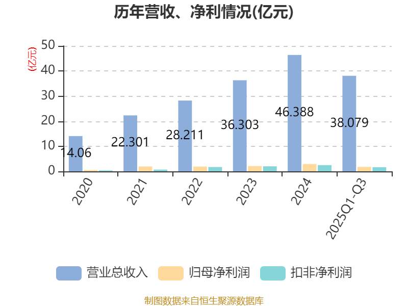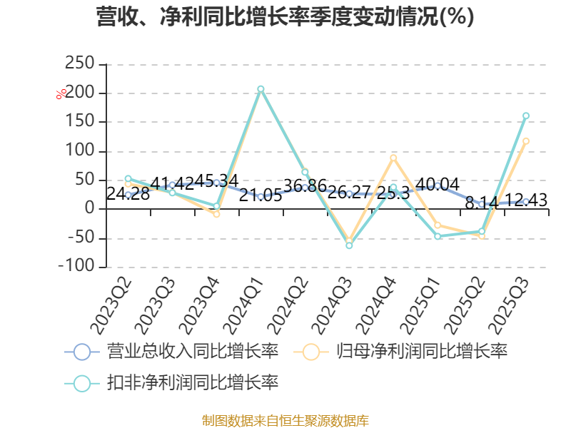 资产重大变化方面,截至2025年三季度末,公司应收票据及应收账款较上年末减少20.95%,占公司总资产比重下降8.6个百分点;固定资产较上年末增加57.91%,占公司总资产比重上升7.16个百分点;在建工程合计较上年末减少20.29%,占公司总资产比重下降5.55个百分点;货币资金较上年末增加53.11%,占公司总资产比重上升3.6个百分点。