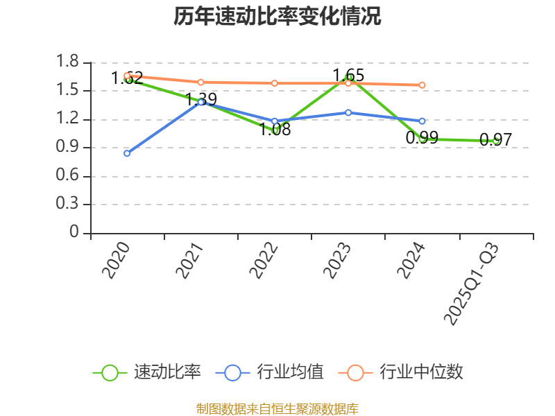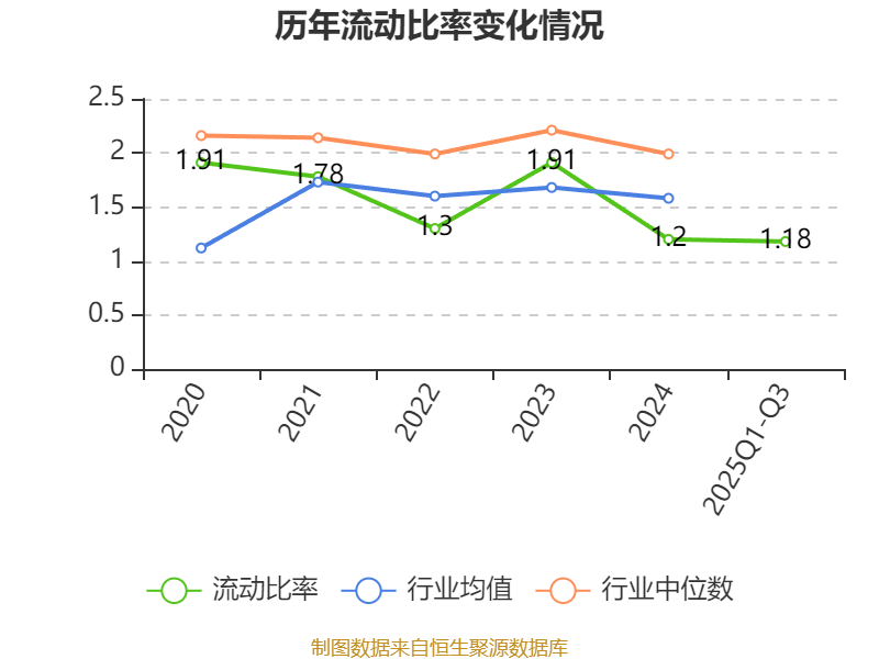 2025年前三季度,公司流动比率为1.18,速动比率为0.97。