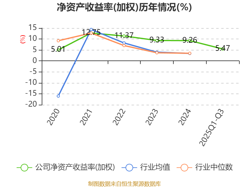 盈利能力方面, 2025年前三季度公司加权平均净资产收益率为5.47%,同比下降1.15个百分点。公司2025年前三季度投入资本回报率为3.52%,较上年同期下降2.19个百分点。