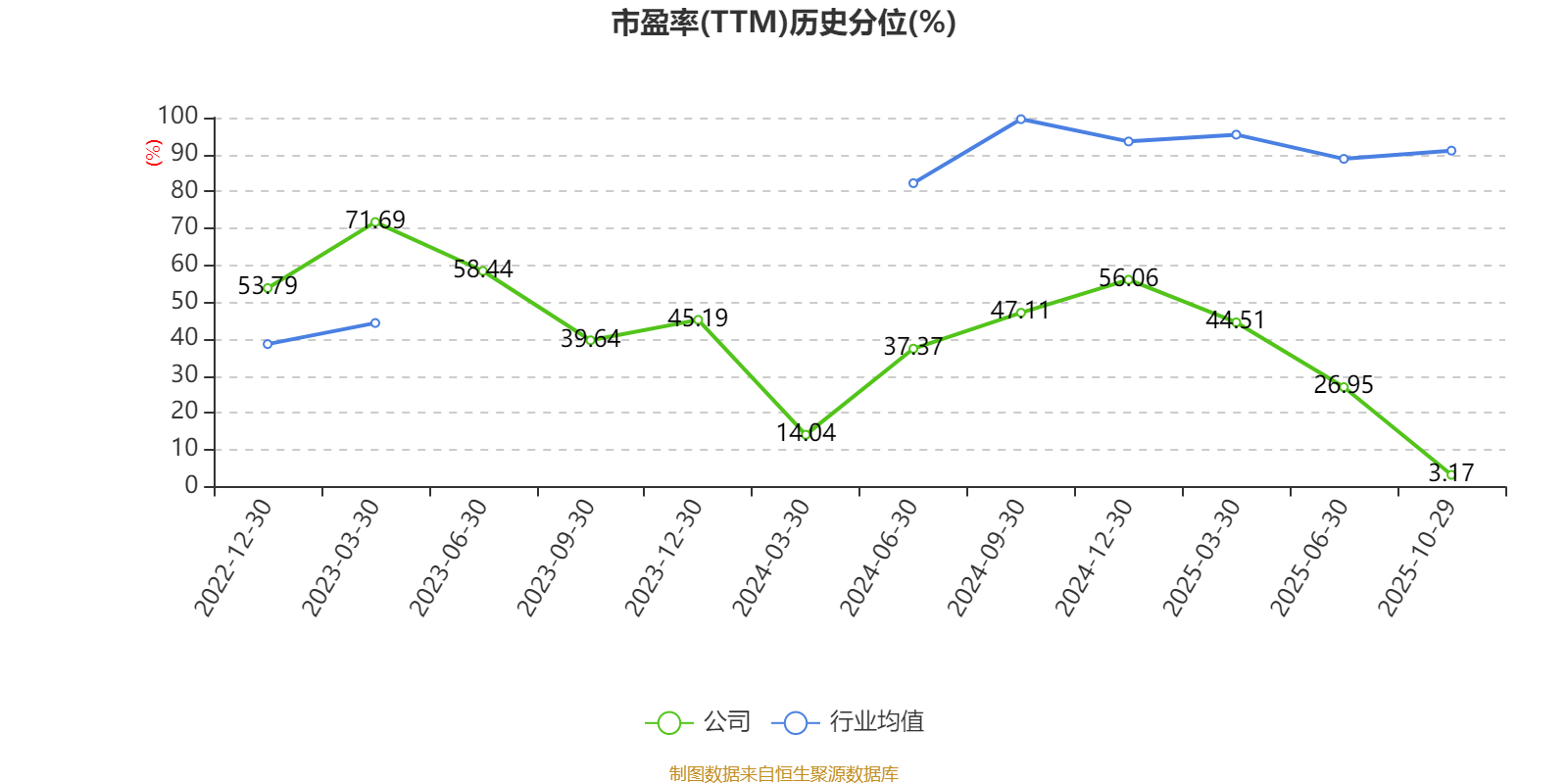 市盈率、市净率为负时,不显示当期分位数,会导致折线图中断。