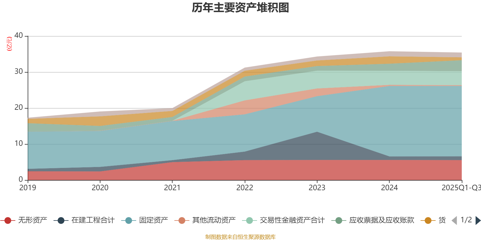 资产重大变化方面,截至2025年三季度末,公司货币资金较上年末减少61.51%,占公司总资产比重下降3.48个百分点;应收票据及应收账款较上年末增加56.38%,占公司总资产比重上升3.18个百分点;固定资产较上年末减少0.09%,占公司总资产比重上升0.53个百分点;其他应收款(含利息和股利)较上年末减少86.22%,占公司总资产比重下降0.44个百分点。