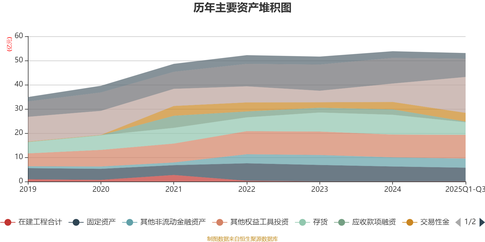 资产重大变化方面,截至2025年三季度末,公司应收票据及应收账款较上年末增加94.32%,占公司总资产比重上升13.77个百分点;货币资金较上年末减少28.92%,占公司总资产比重下降5.51个百分点;存货较上年末减少36.56%,占公司总资产比重下降5.43个百分点;应收款项融资较上年末减少86.22%,占公司总资产比重下降3.57个百分点。
