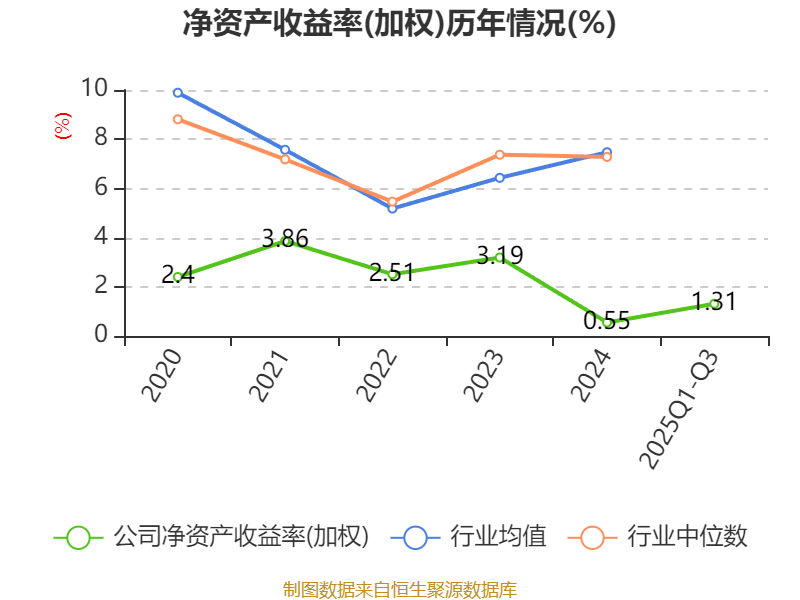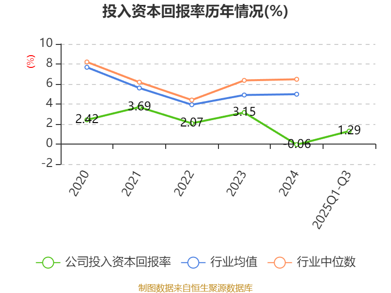 盈利能力方面, 2025年前三季度公司加权平均净资产收益率为1.31%,同比下降0.03个百分点。公司2025年前三季度投入资本回报率为1.29%,较上年同期下降0.04个百分点。