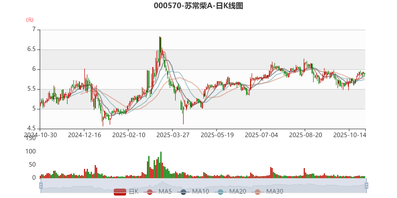 以10月29日收盘价计算,苏常柴A目前市盈率(TTM)约为250.07倍,市净率(LF)约1.21倍,市销率(TTM)约1.65倍。
