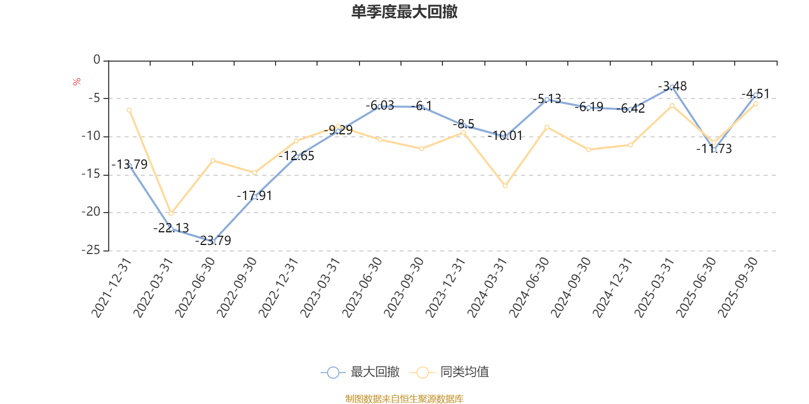 截至10月28日,基金近三年最大回撤为27.59%,同类可比基金排名73/513。单季度最大回撤出现在2022年二季度,为23.79%。