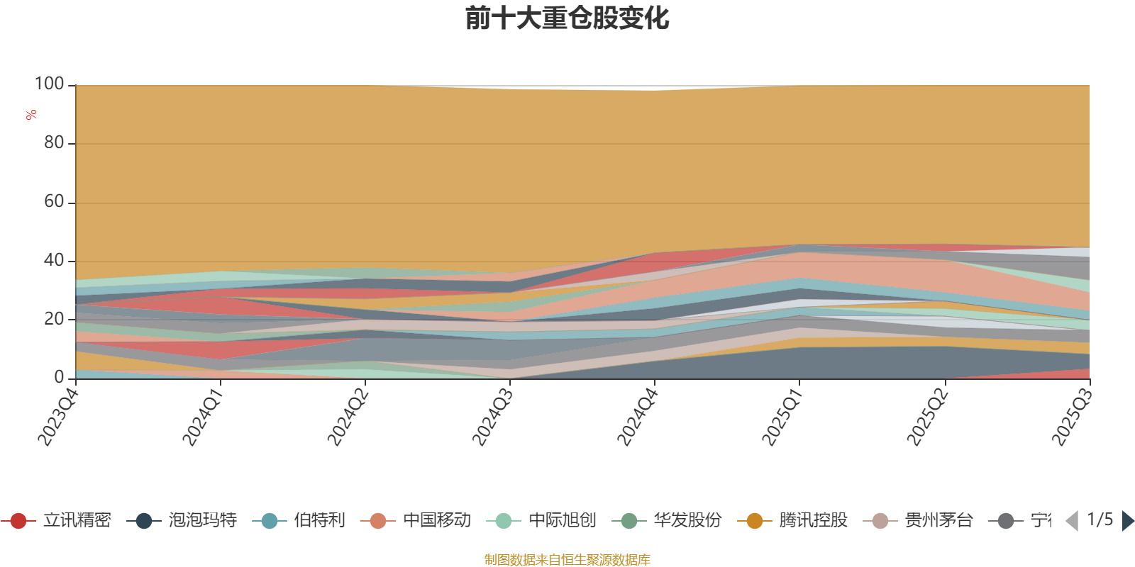 截至2025年三季度末,基金十大重仓股分别是胜宏科技、小米集团-W、泡泡玛特、宁德时代、源杰科技、腾讯控股、科伦博泰生物-B、立讯精密、天孚通信、恒瑞医药。