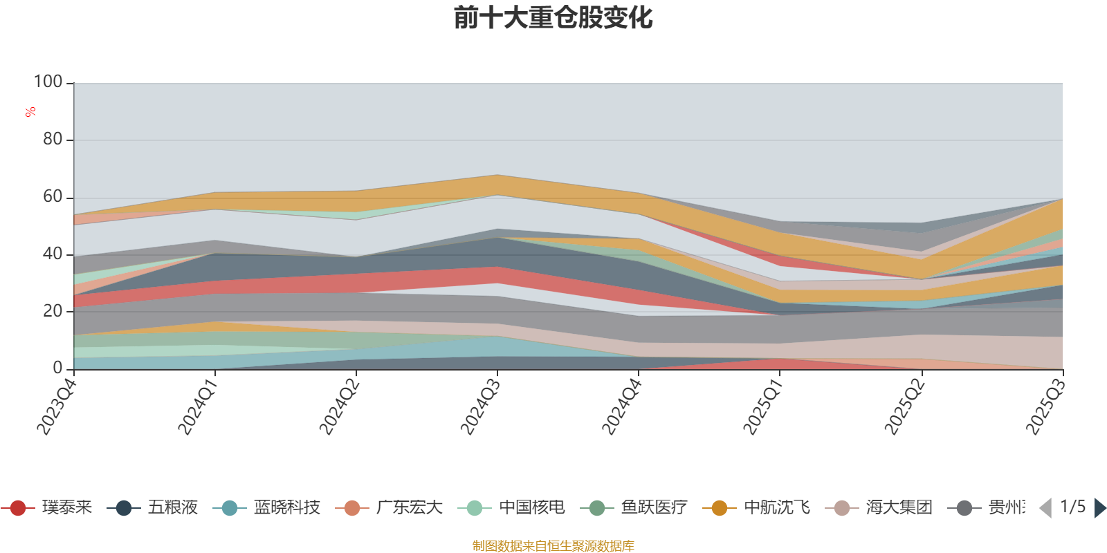该基金持股集中度较高。截至2025年三季度末,基金十大重仓股分别是海大集团、宁波银行、贵州茅台、徐工机械、万华化学、金风科技、华通线缆、科达利、滨江集团、航天电子。