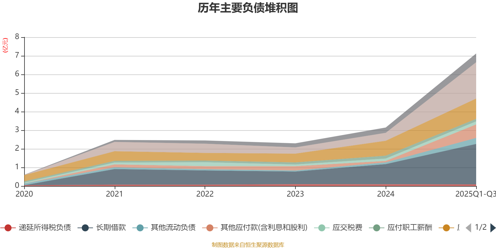 负债重大变化方面,截至2025年三季度末,公司短期借款较上年末增加354.53%,占公司总资产比重上升7.87个百分点;其他应付款(含利息和股利)较上年末增加908.37%,占公司总资产比重上升3.72个百分点;长期借款较上年末增加101.39%,占公司总资产比重上升3.22个百分点;其他流动负债较上年末增加227.01%,占公司总资产比重上升1.05个百分点。