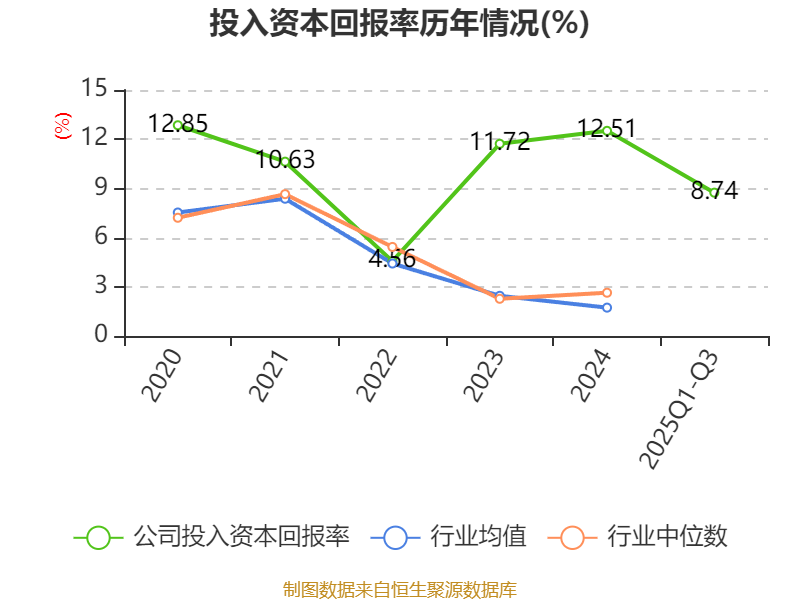 盈利能力方面, 2025年前三季度公司加权平均净资产收益率为11.8%,同比上升2.31个百分点。公司2025年前三季度投入资本回报率为8.74%,较上年同期上升0.12个百分点。